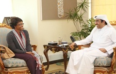 اجتمع سعادة الدكتور/ علي بن صميخ المري رئيس اللجنة الوطنية لحقوق الإنسان بمكتبه بمقر اللجنة أمس بسعادة السيدة/ليندا ديكسون ممثلة وزارة الدفاع الأمريكية وبحث اللقاء أوجه التعاون في القضايا ذات الاهتمام المشترك وسبل تفعيل آليات التواصل في كافة المجالات المتعلقة بحقوق الإنسان بين الجانبين.