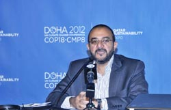 الدوحة في 27 نوفمبر /قنا/ : في الندوة المصاحبة لمؤتمر الأمم المتحدة الثامن للتغير المناخي تحت عنوان " الحق في البيئة" التي نظمتها اللجنة الوطنية لحقوق الإنسان يوم الثلاثاء 27/11/2012 بأرض المعارض ألقي كلمة الافتتاح الدكتور/ يوسف عبيدان نائب رئيس اللجنة، بينما قدم خلال الندوة الدكتور جاسر عودة من مركز التشريع الاسلامي وعلم الأخلاق محاضرة حول " حقوق الإنسان والبيئة والأخلاق الإسلامية: نهج علميٍ" ؛ و تتحدث في الندوة كل من المستشار مؤمن الدرديرى الخبير القانوني باللجنة الوطنية لحقوق الإنسان؛ و الدكتور محمد سيف الكواري الوكيل المساعد لشؤون المختبرات والتقييس بوزارة البيئة.